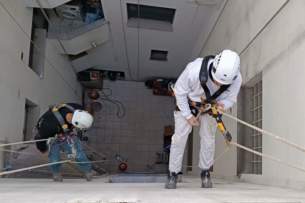 Estamos especializados el la rehabilitación y mantenimiento de patios de luces, donde casi es indispensable nuestros servicios. Por la imposibilidad de instalación de andamios, mínimas molestias a inquilinos (podemos acceder a galerías sin molestar) y rapidez hacen que el sistema de trabajo por cuerdas sea el más indicado para el pintado de patios de luces.